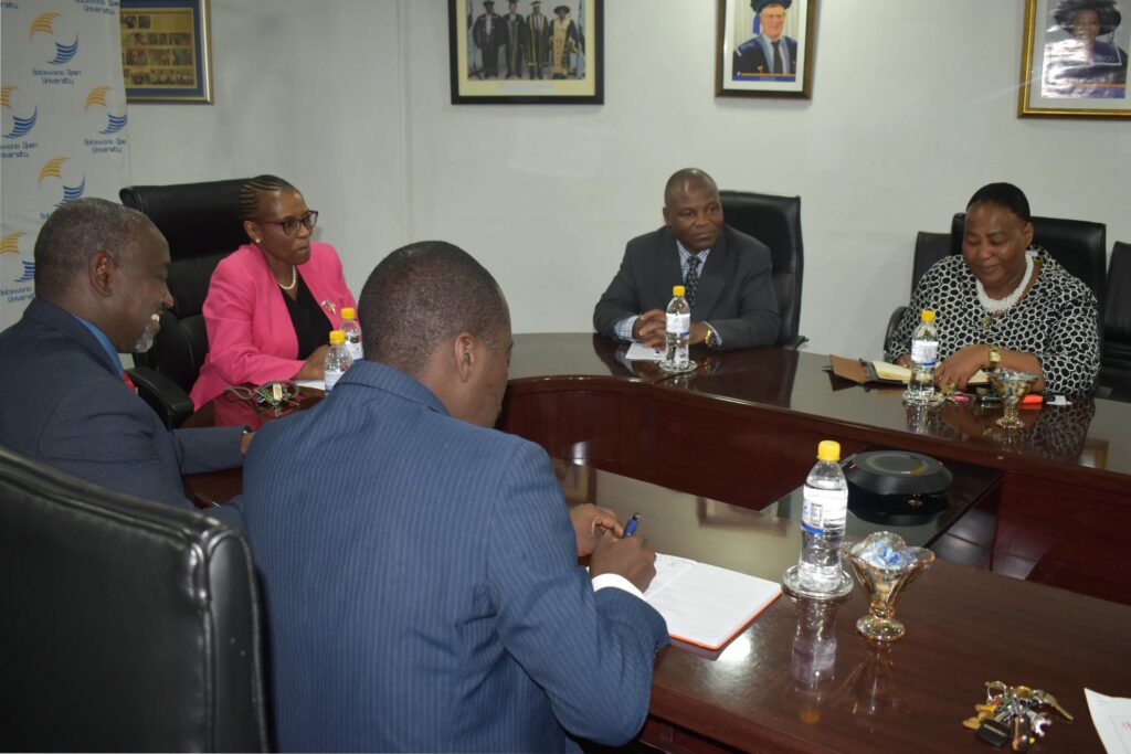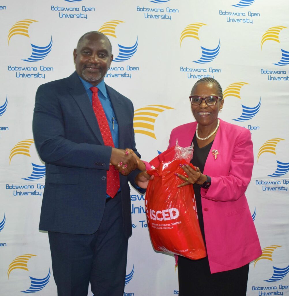 Com o intuito de fortalecer a colaboração, a capacidade institucional e promover a internacionalização, a Universidade Aberta ISCED (UnISCED) realizou, nos dias 08 e 09 de Dezembro de 2025, uma visita de trabalho à Universidade Aberta do Botswana (BOU). A delegação foi liderada pelo Reitor, Prof. Doutor Martins Laita, acompanhado pelo Director da Faculdade de Engenharias e Agricultura, Eng.º Gabriel Viegas. A comitiva foi recebida pela Reitora da BOU, Profa. Doutora Kgomotso Moahi e por membros do corpo directivo.